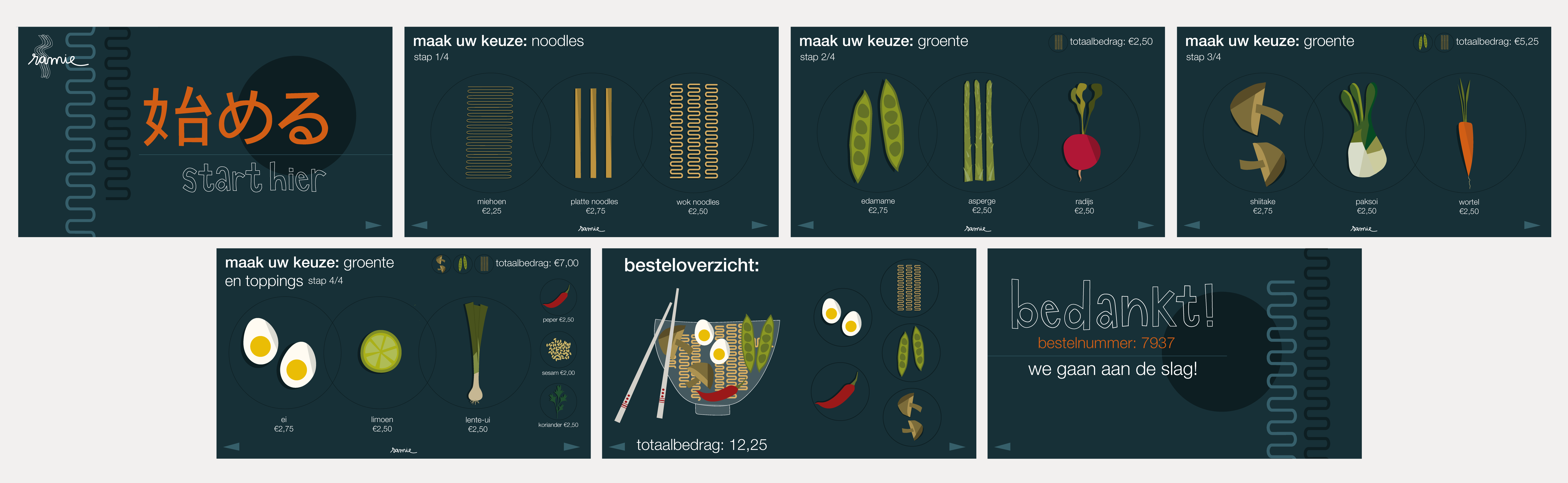De opdracht voor foodcourt was om een interactief prototype te maken voor een bestel app in adobe xd. De ingrediënten en designs zijn vanzelfsprekend zelf ontworpen. We hebben ook allemaal een gerecht gekozen uit een specifiek land. Ik heb ramen gekozen uit Japan.